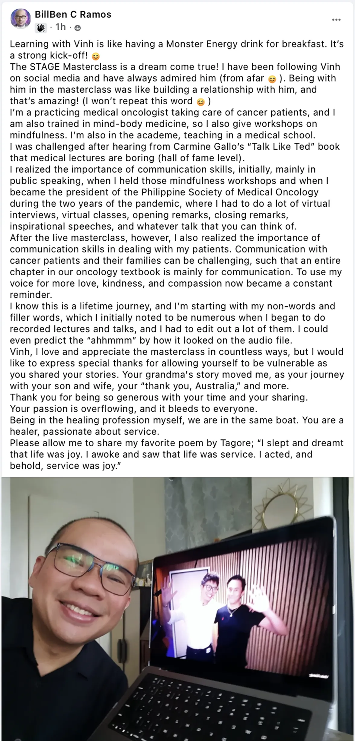 Many clients combine Academy for scale with the STAGE Virtual Masterclass for a live, practice-heavy sprint. The Masterclass is led by Vinh and complements the Academy perfectly.