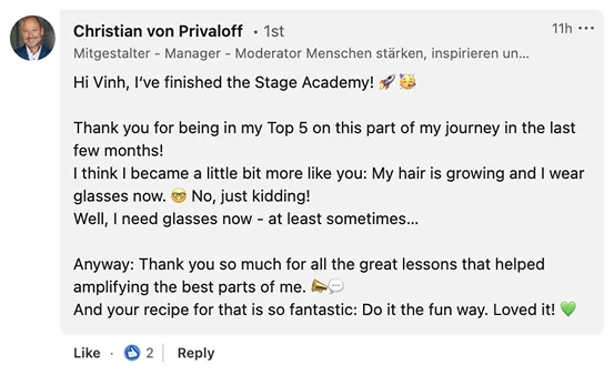 STAGE offers proven, scalable programs trusted by Fortune 500 leaders and professionals worldwide. From universities and schools to coaches, consultants, and training companies – STAGE equips you to give your learners the skill that multiplies every other skill: Communication.